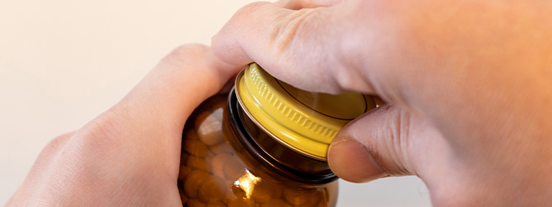 ボトル容器のいいところはキャップを使って必要な錠剤の数を意外と簡単に調整できること、手に触れないで取り出せるから衛生的であること。