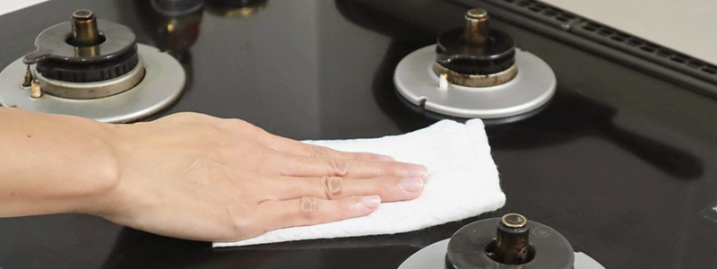 そうすると、お掃除を始めることが億劫になってしまい、気が付くと何週間も放置してしまう負のスパイラルに。そうならないために、火を使ったら軽くコンロ周りを拭く癖をつけましょう!